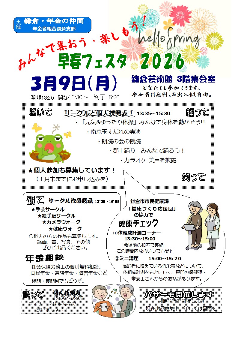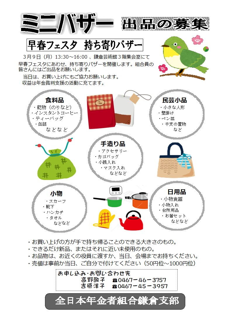 2月13日 大船仲通で年金シール投票を行います。年金者組合鎌倉支部では、偶数月の年金受給日(15日。土日にあたる場合はその前の金曜日)の午前10:30~11:30、大船仲通で受給日宣伝・署名活動を行っています。奇数月には鎌倉駅東口を恒例としています。8月から署名に加えて、シール投票を実施しています。