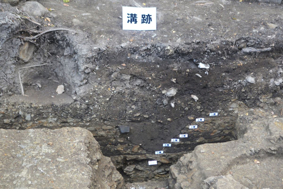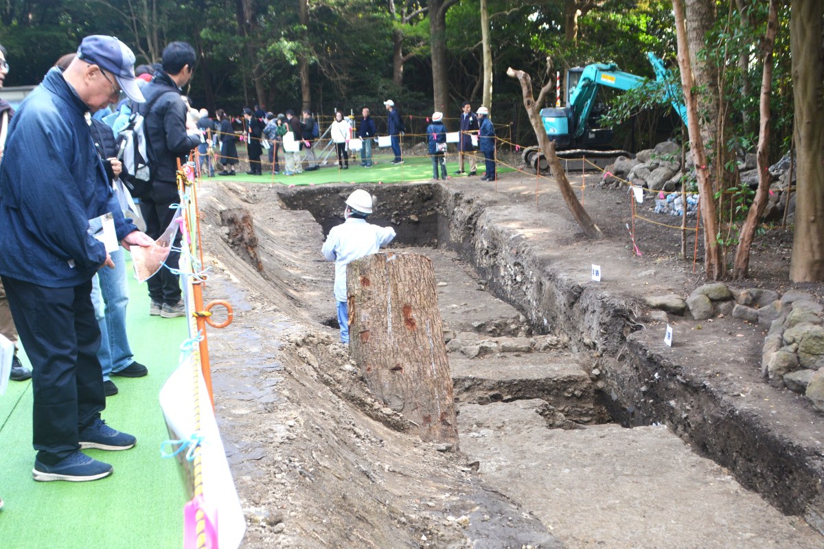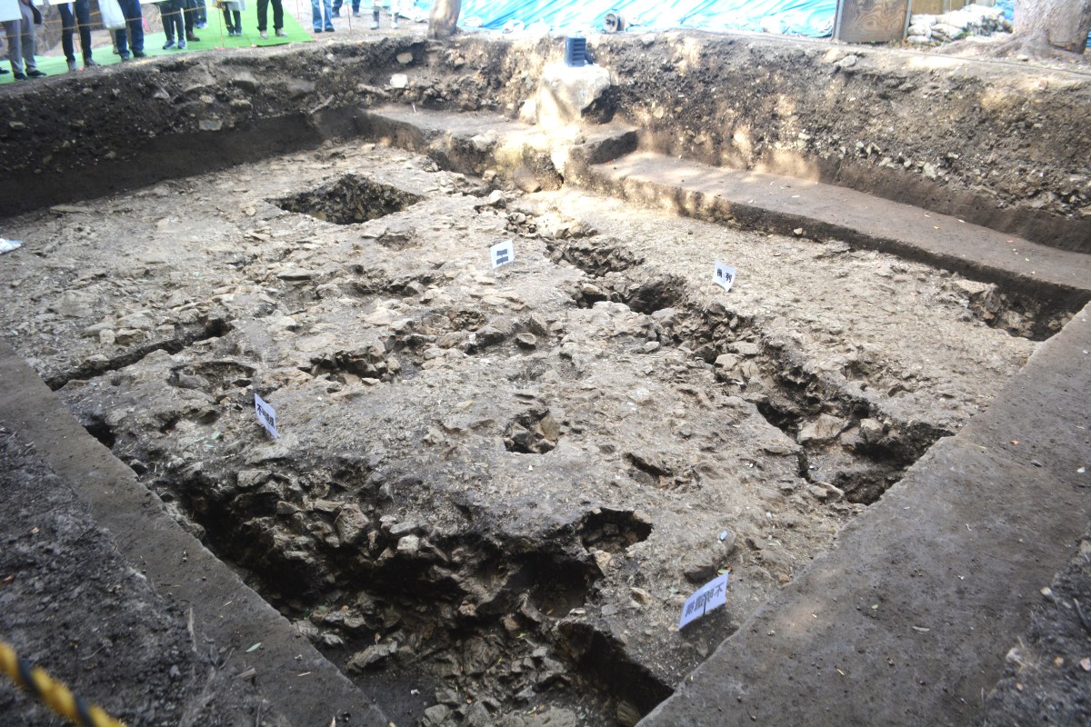 A地点は、市がカフェを建設する予定地で、予定建物の範囲のみを発掘している。担当者との説明では、見えている地面が鎌倉時代のものという。これ以上掘り下げたり、範囲を拡げる予定はない。