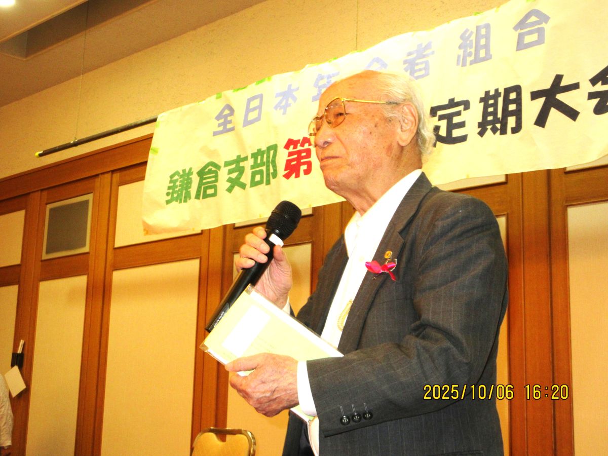 第96回メーデーに参加2025年5月1日、鎌倉海浜公園で開催された第96回メーデー、鎌倉逗子葉山地域統一集会に参加しました。集会には80人ほどが参集、鎌倉支部恒例の手作りプラカートは今年の干支にちなんだヘビを襟巻きに、デコレーションコンテストで第1位を獲得しました。デモ行進は若宮大氏を八幡宮で折り返し、元気に訴えました。